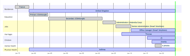 We would like you to include information about central life events such as partnerships, children, employment, education and health. For each event, you will be asked to recall when it happened, and if applicable, how long it lasted and when it finished. We will be building a picture of your life, but it’s up to you how much you want to share with us.